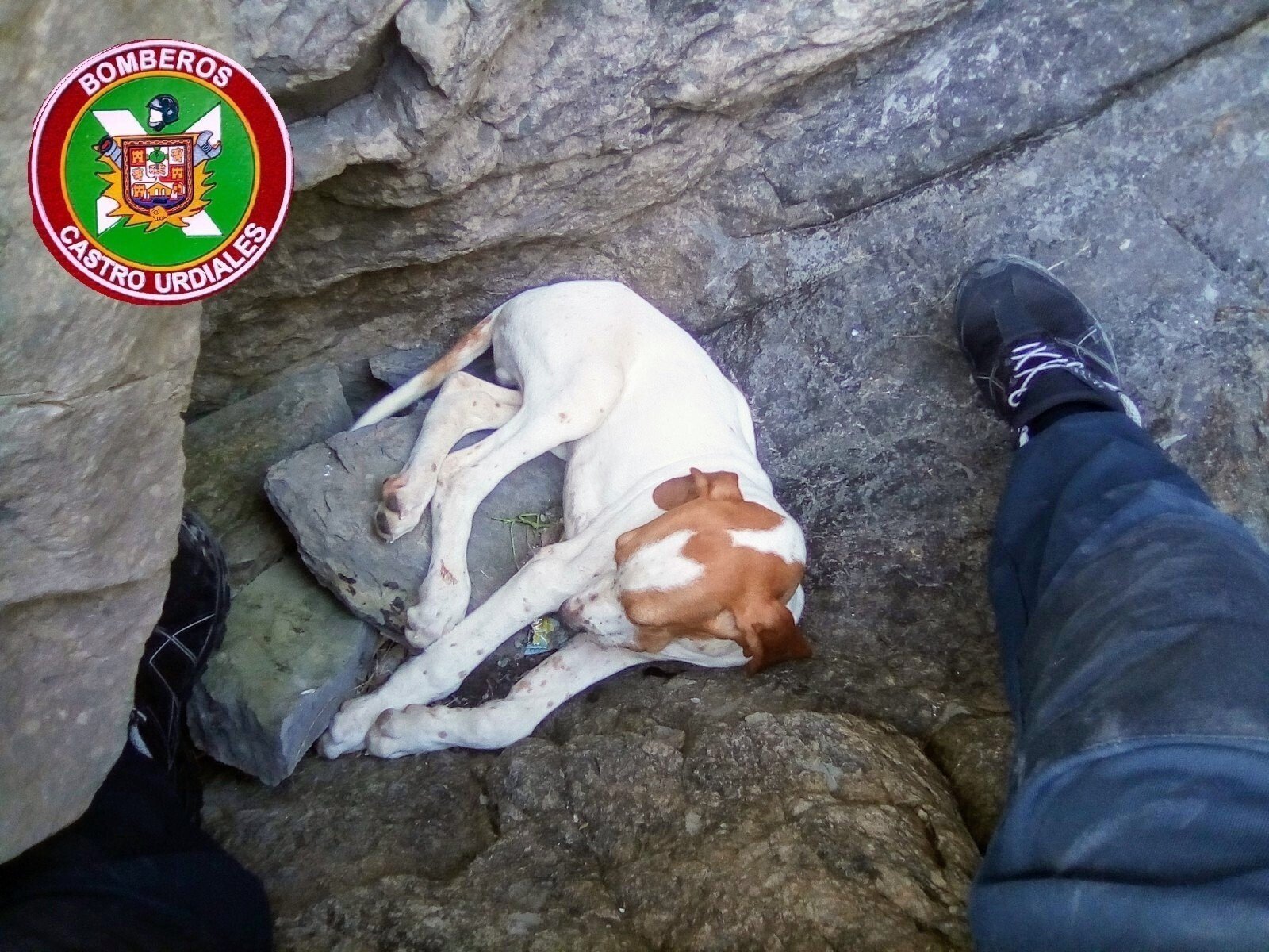 Bomberos de Castro Urdiales han rescatado este miércoles a un perro que se había caído en el acantilado de Allendelagua, ha informado el Cuerpo.