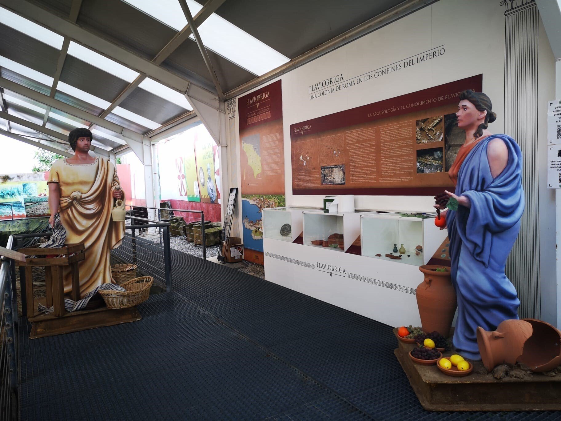 Y en el caso de Flaviobriga se ha ubicado a una pareja de ciudadanos romanos, desarrollando una acción comercial común en la época y caracterizados con su vestimenta, peinado y pose.
