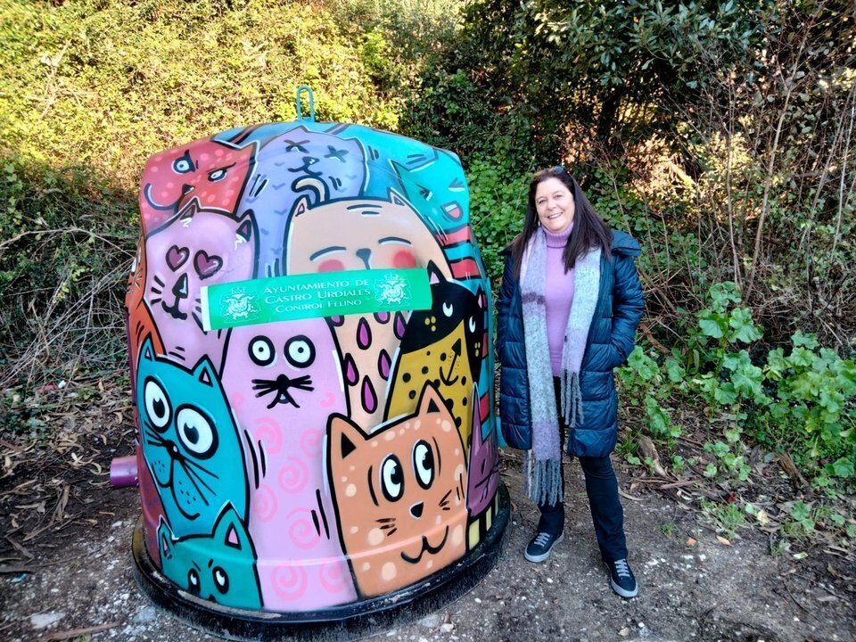 El contenedor, donado al Ayuntamiento por Ecovidrio, ha sido grafiteado por el artista plástico Steve Camino con motivos gatunos y se ha instalado en una zona donde se ubica una de las 35 colonias felinas que existen en el municipio.