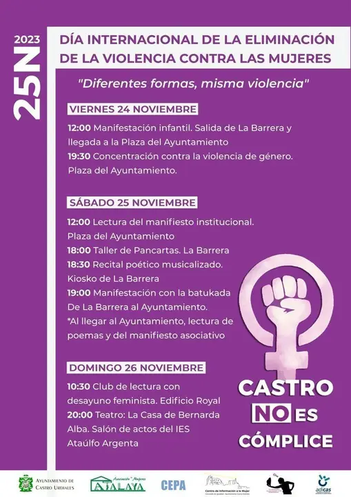 Castro Urdiales conmemorará el Día Internacional de la Eliminación de la Violencia hacia las Mujeres (25N) con varios actos, algunos de ellos novedosos, como una manifestación infantil, una recital poético musicalizado, un taller de pancartas o una sesión de lectura con desayuno feminista.