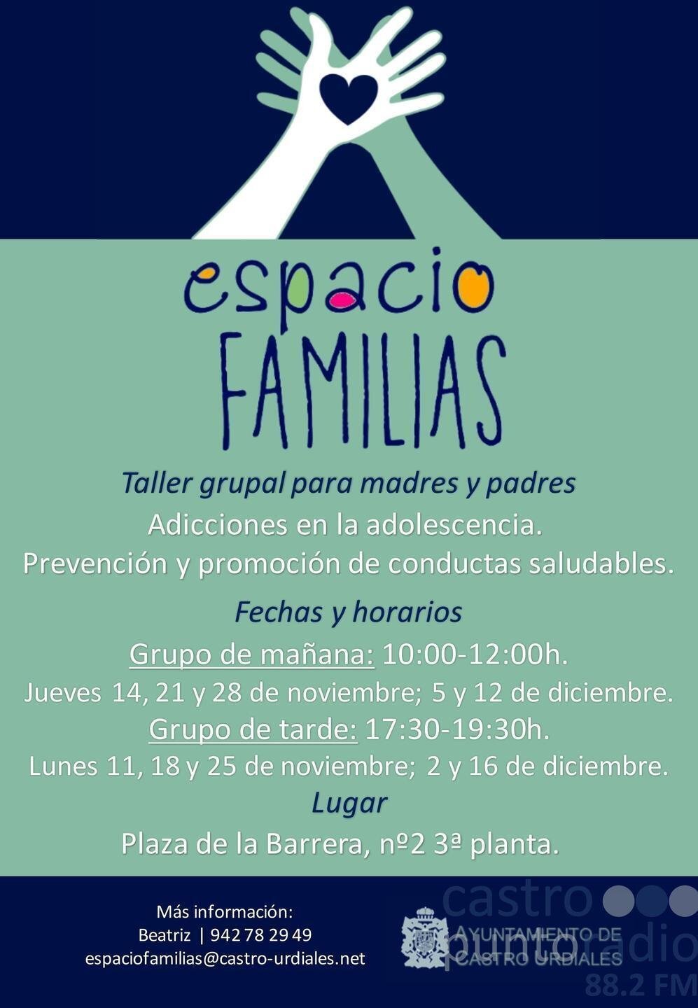 El Ayuntamiento de Castro Urdiales comienza este jueves 14 el segundo taller de Espacio Familias dedicado a 'Adicciones en la adolescencia. Prevención y promoción de conductas saludables'.