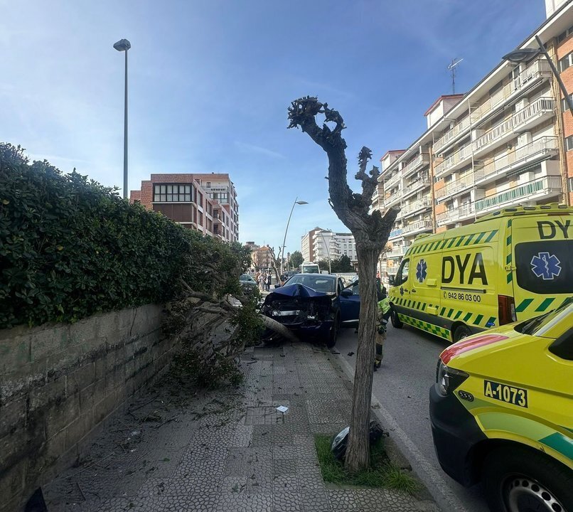 Un coche invade la acera, atropella a un peatón y se choca contra un árbol en Castro Urdiales