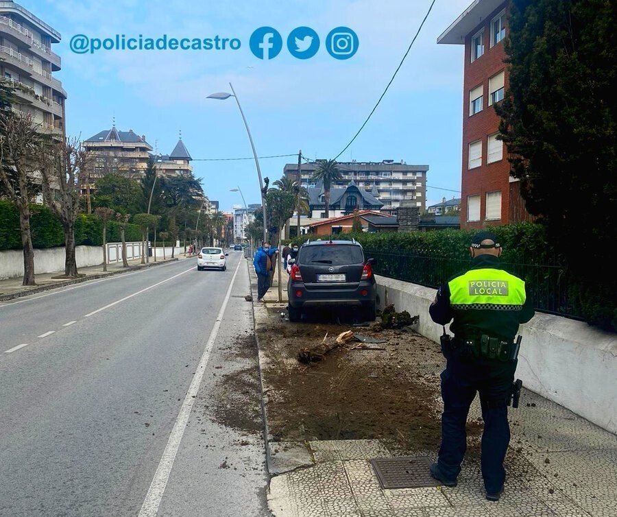 Un turismo ha perdido el control y colisionado contra un árbol en la acera del paseo Menéndez Pelayo de Castro Urdiales sin que se hayan producido heridos.