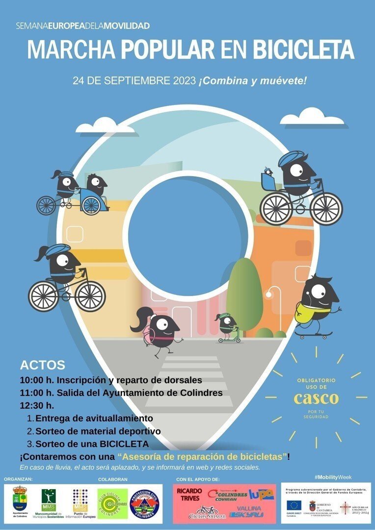 Colindres celebrará este domingo, 24 de septiembre, una 'Marcha popular en bicicleta' con la que se sumará a la celebración de la Semana Europea de la Movilidad, que este año, bajo el lema 'Combina y muévete', resalta los beneficios que tienen para la salud, el medio ambiente y a la economía las formas de desplazamiento alternativas al vehículo a motor.