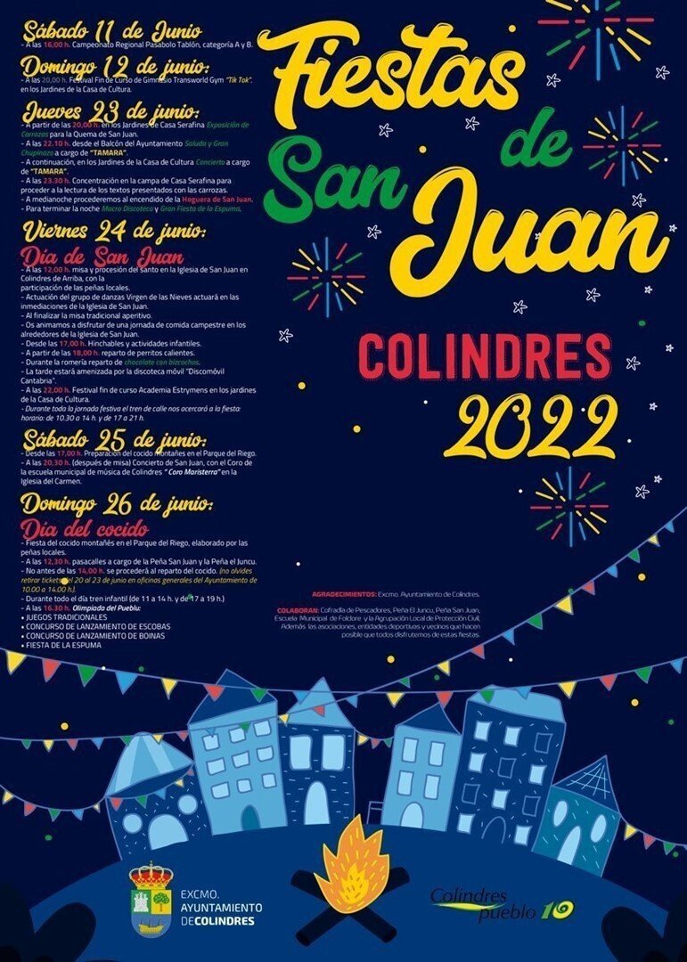 Además, el viernes 24, día de San Juan, se celebrará, a partir de las 12.00 horas, la misa y procesión del Santo en la Iglesia de San Juan en Colindres de Arriba con la participación de las peñas locales y la actuación del grupo de danzas Virgen de Las Nieves en las inmediaciones del templo.