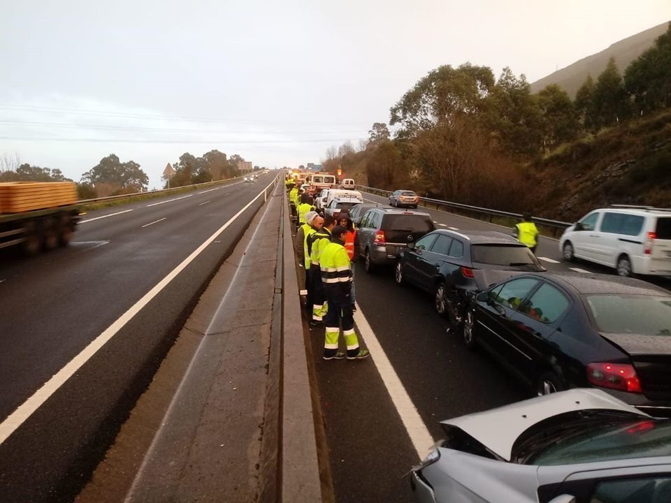 Un total de 13 vehículos se han visto implicados en una colisión múltiple ocurrida a primera hora de este viernes en la autovía A-8 a la altura de la localidad cántabra de Castro Urdiales.