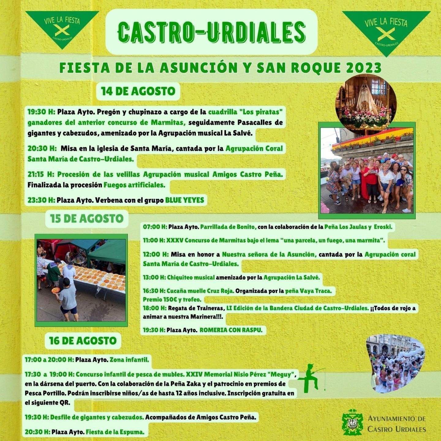 Castro Urdiales celebra desde este lunes y hasta el miércoles 16 las fiestas de la Asunción y San Roque, que comenzarán a las 19.30 horas con el pregón y chupinazo a cargo de la cuadrilla Los Piratas, campeones del concurso de marmitas.