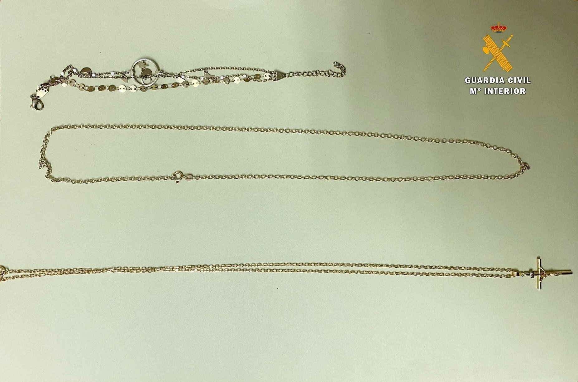 Las investigaciones realizadas, y contando con la descripción de los presuntos autores, permitieron la detención de los supuestos autores de los hechos la mañana del 10 de agosto, momento en que se intervino una de las cadenas de oro sustraídas, así como otras dos piezas de joyería, de las que no pudieron acreditar su legítima propiedad.