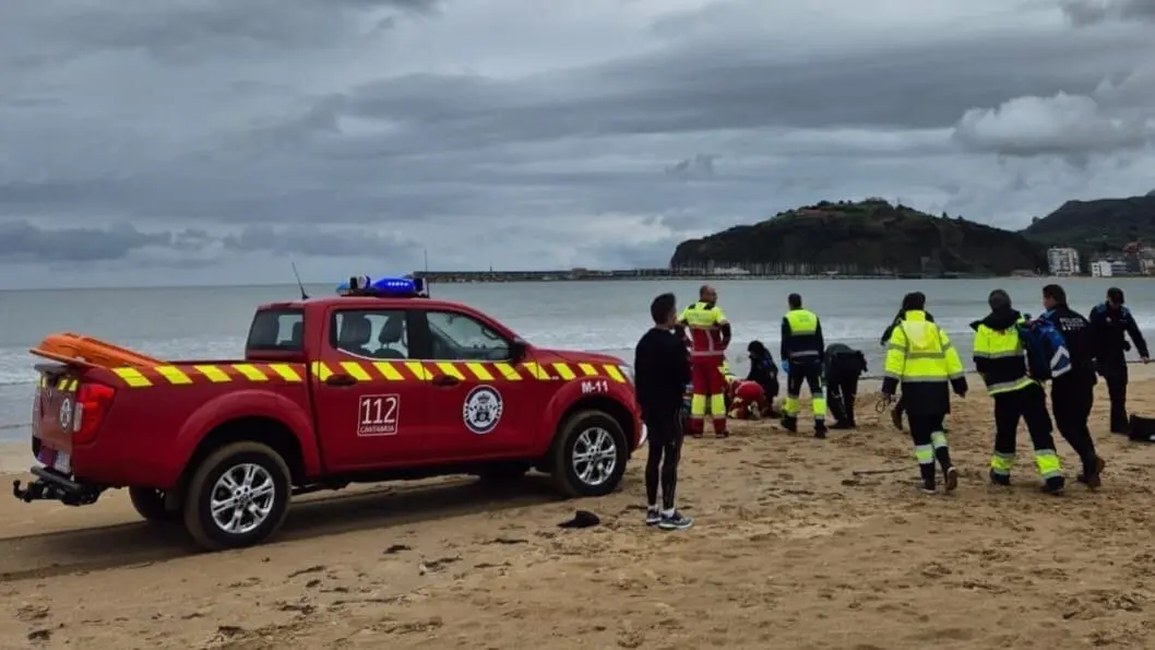 Efectivos de emergencias han recuperado de una parada cardiorespiratoria a una mujer que se desplomó en la playa de la Salvé de Laredo.