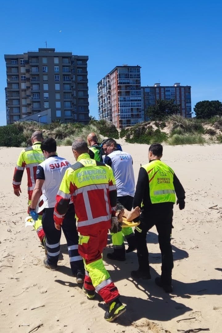 Los servicios de emergencias han evacuado este martes a un kaisurfista accidentado en la playa del Puntal, en Laredo.