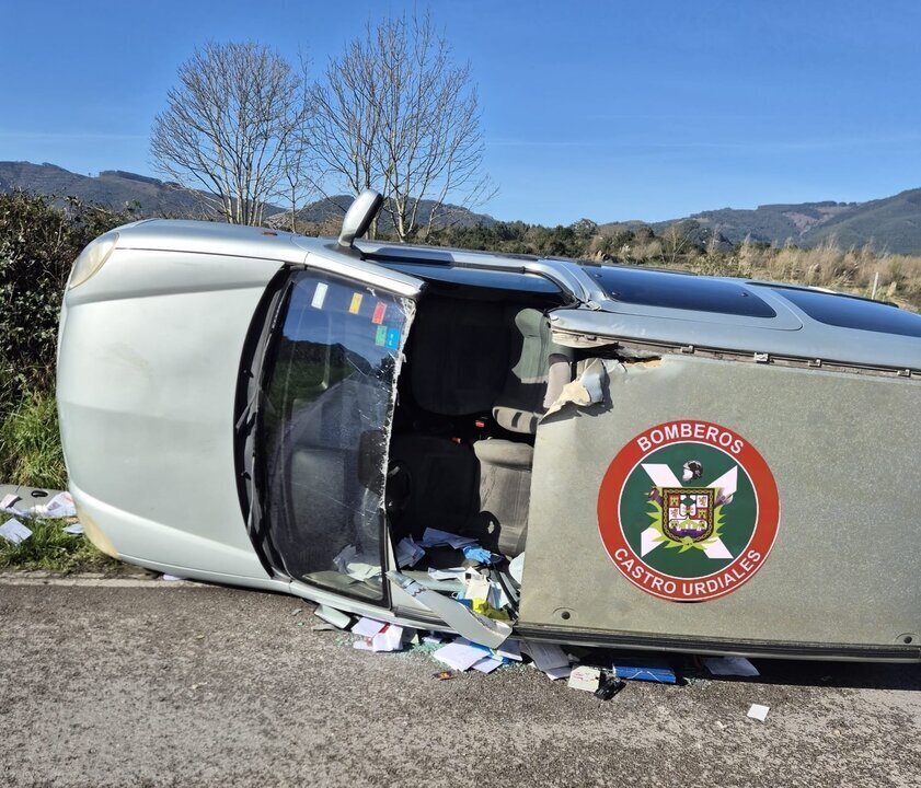 Los Bomberos de Castro Urdiales han excarcelado este miércoles a un hombre que se quedó atrapado en un coche tras volcar en el punto kilométrico 1,2 de la carretera autonómica CA-931, en la subida a La Loma.