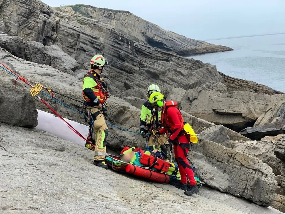 El helicóptero medicalizado del Gobierno de Cantabria ha rescatado esta mañana a un hombre con una posible fractura de rodilla en los acantilados de Castro Urdiales.