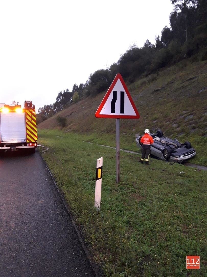 Un conductor de 21 años, vecino de Laredo, ha resultado herido leve esta tarde al salirse su vehículo de la vía y volcar en la Autovía del Cantábrico (A-8), a la altura de la localidad de Ambrosero, en el municipio de Bárcena de Cicero.