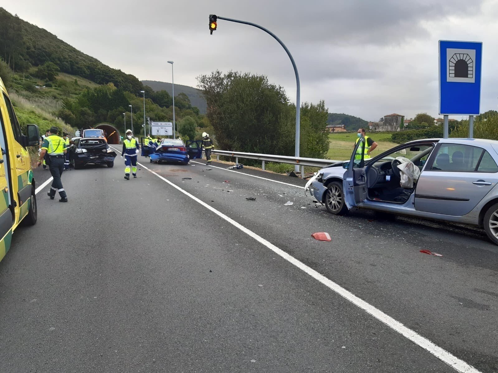 Tres personas han resultado heridas y han sido evacuadas al hospital tras el choque de tres vehículos en la entrada del túnel de Limpias, en el que una de ellas ha tenido que ser liberada del turismo por el Cuerpo de Bomberos.