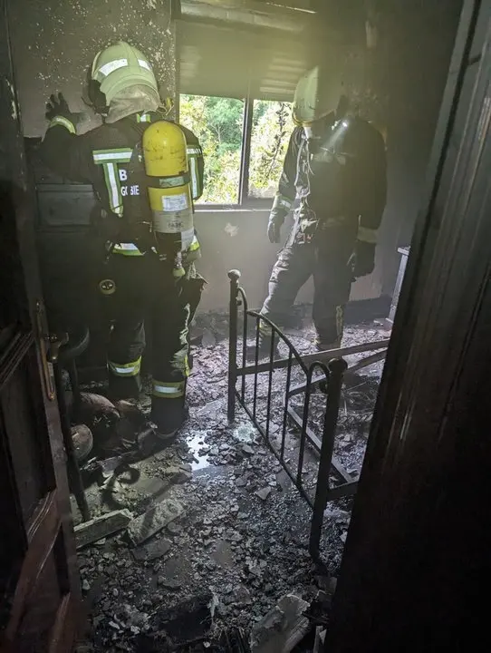 A la llegada de los bomberos el fuego se encontraba completamente desarrollado. Por la dificultad de accesos al lugar para los camiones, los efectivos han tenido que montar largas líneas de mangaje y atajar el incendio, en un principio, desde la parte trasera de la edificación y, posteriormente, por todo el perímetro.