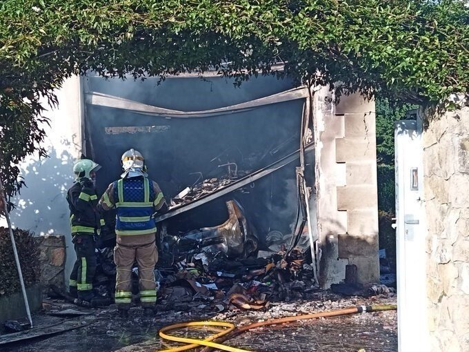 El garaje ha quedado totalmente afectado y un vehículo ha resultado calcinado, además de producirse daños en la vivienda.