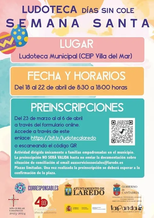 El Ayuntamiento de Laredo ha abierto este miércoles el plazo de inscripción al servicio de ludoteca municipal para el periodo no lectivo de Semana Santa.