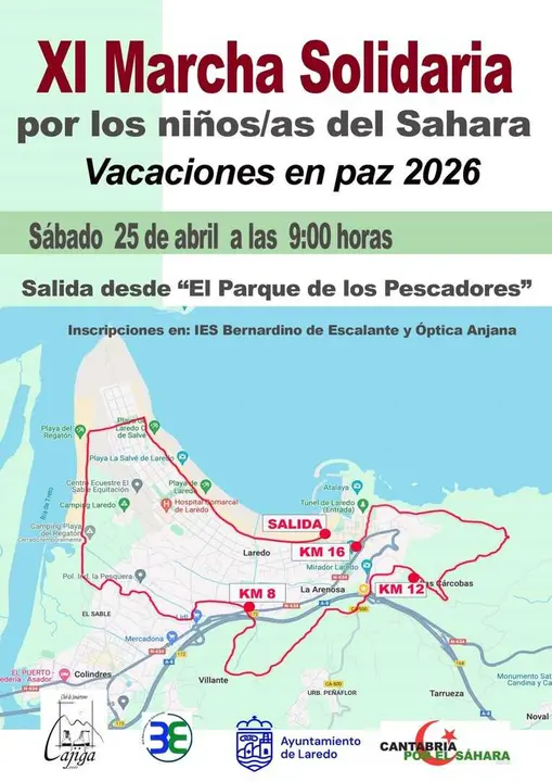 Laredo celebrará el próximo 25 de abril la XI Marcha Solidaria por la infancia saharaui, una cita consolidada en el municipio para respaldar el programa Vacaciones en Paz, que este año prevé la participación de 46 menores saharauis.