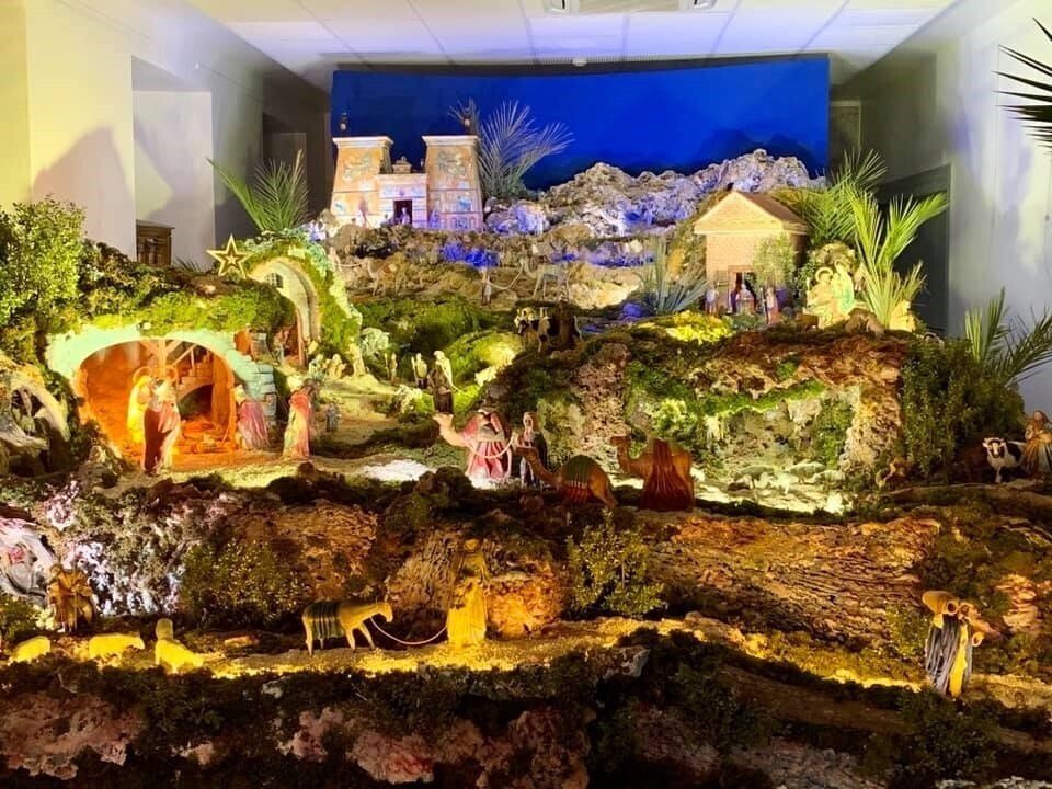 Con una extensión de treinta metros cuadrados, la composición belenística combina la tradición de las escuelas murciana y portuguesa representada en setenta y cinco figuras de gran calidad.