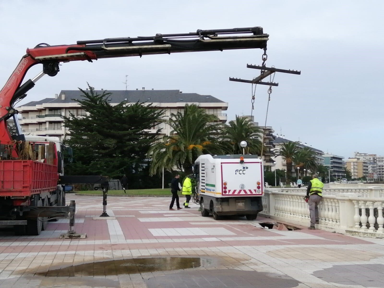 El Ayuntamiento de Laredo ha concluido los trabajos de reparación del socavón producido en el Paseo Marítimo del municipio, a la altura de la desembocadura del río Mantilla, al paso de un vehículo del servicio de limpieza viaria municipal.