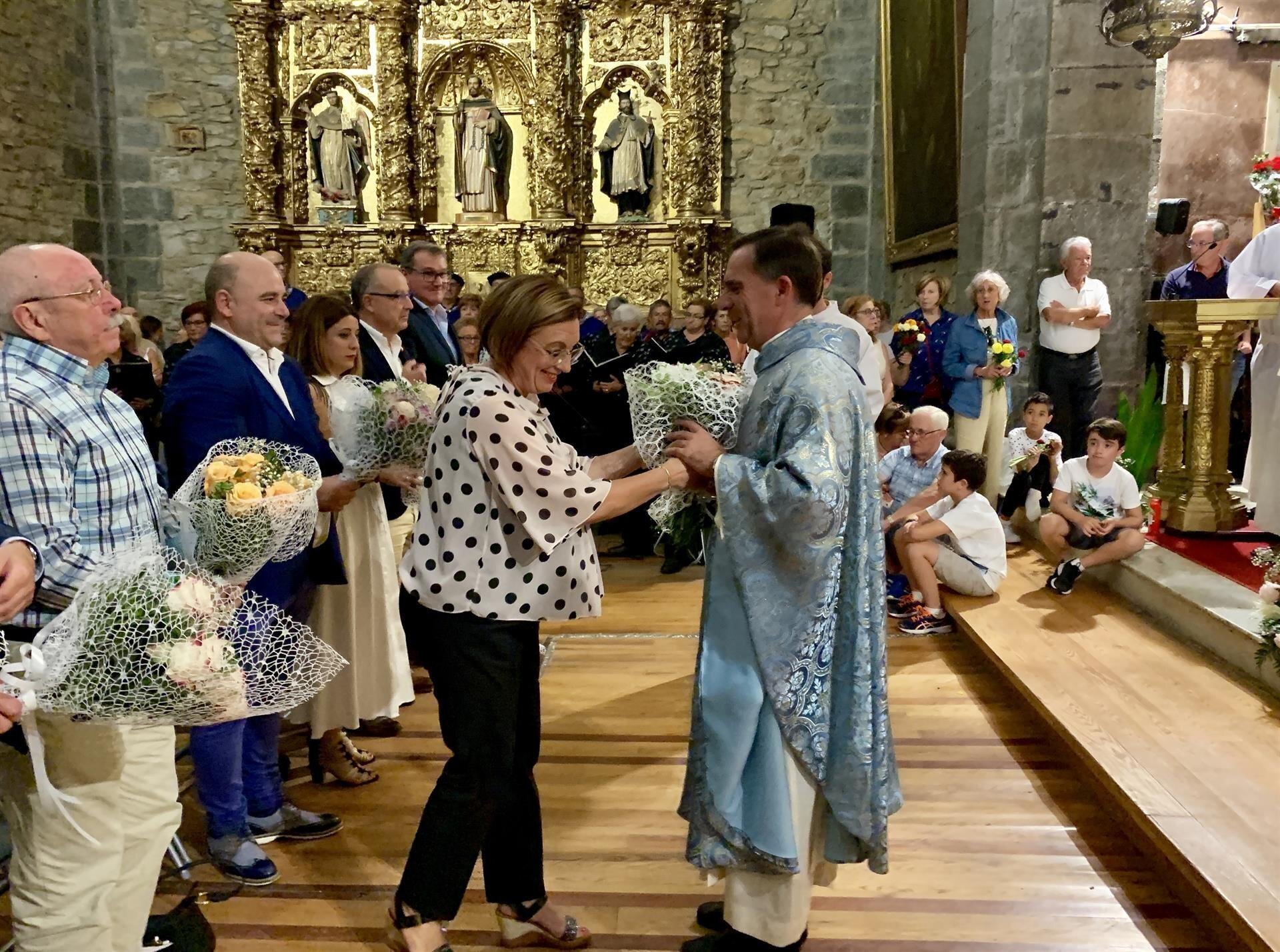 La ofrenda floral a la patrona de Cantabria, la Virgen Bien Aparecida, presidida por distintos miembros de la Corporación de Laredo con su alcaldesa, Rosario Losa, al frente, reunió este sábado en el santuario de Hoz de Marrón a varios centenares de vecinos desplazados desde Laredo y localidades próximas que llenaron la nave central y capillas del templo.