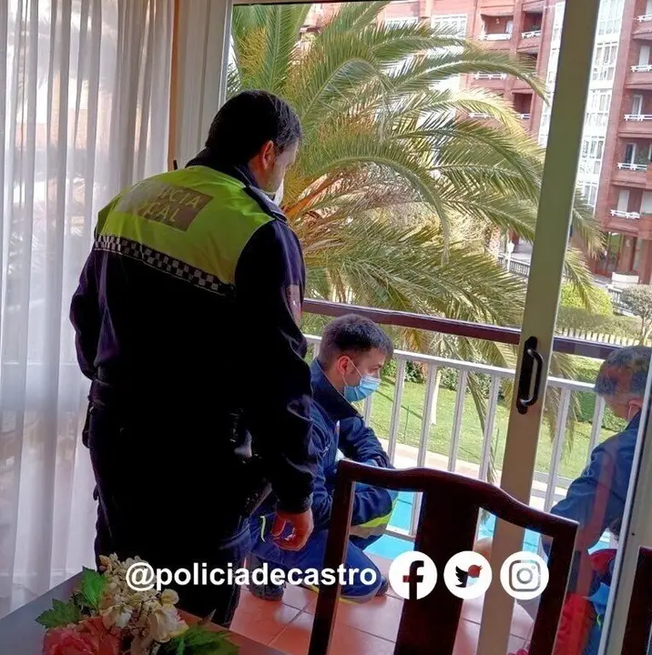 Agentes de la Policía y los Bomberos de Castro Urdiales han liberado esta tarde a una mujer de avanzada edad que tenía una pierna atrapada en la barandilla del balcón de una vivienda de la localidad.