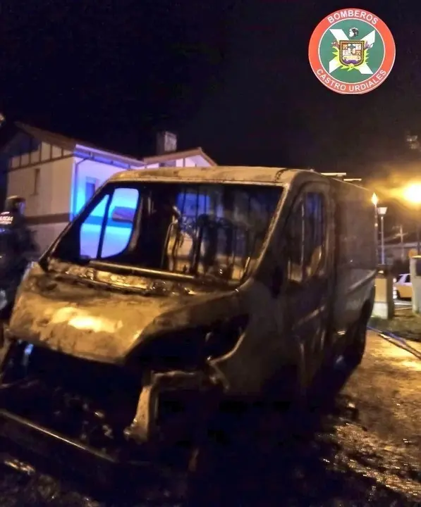Los bomberos de Castro Urdiales, con apoyo de los de Laredo, han intervenido anoche en el incendio de una furgoneta situada junto a unas edificaciones de Sámano.