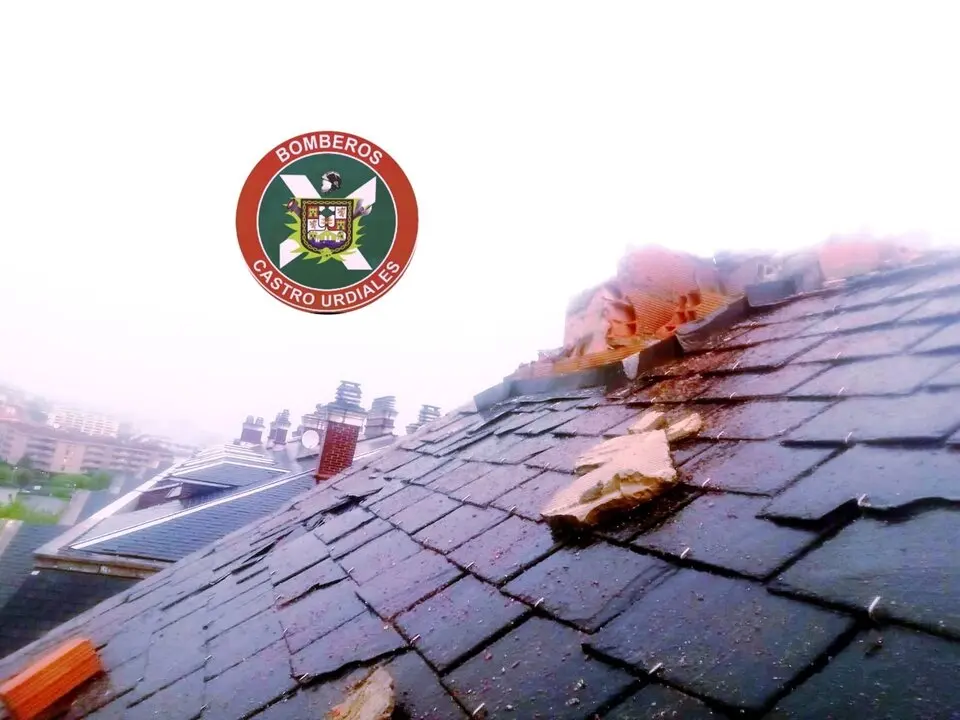 La caída de un rayo este viernes sobre el tejado de un edificio de Castro Urdiales ha provocado daños en la cubierta y desprendimientos de cascotes.