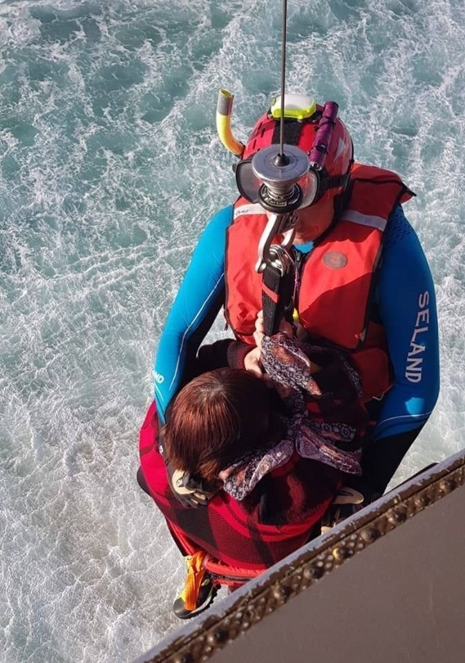 Rescatada por el helicóptero una pareja aislada en una roca de la playa de Cuberris en Ajo