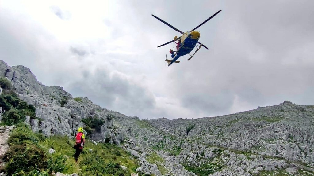 El equipo del helicóptero del Gobierno de Cantabria ha rescatado este miércoles a una mujer que presentaba un traumatismo craneoencefálico leve con herida abierta en la cabeza tras sufrir una caída en la ruta de los Ojos del Diablo de Liendo.