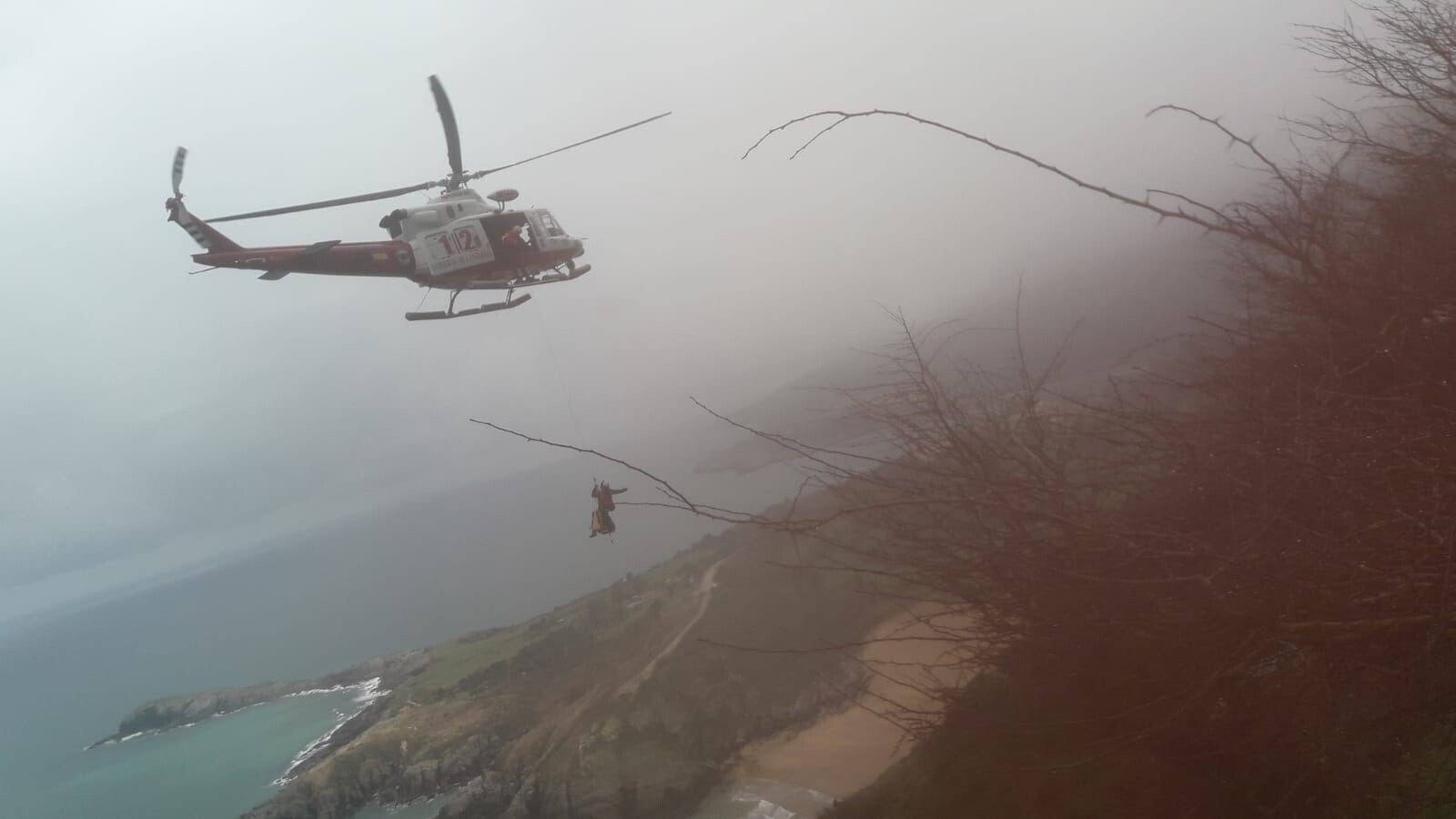 Rescatado en helicóptero un hombre de 74 años que se cayó en un camino litoral de Castro