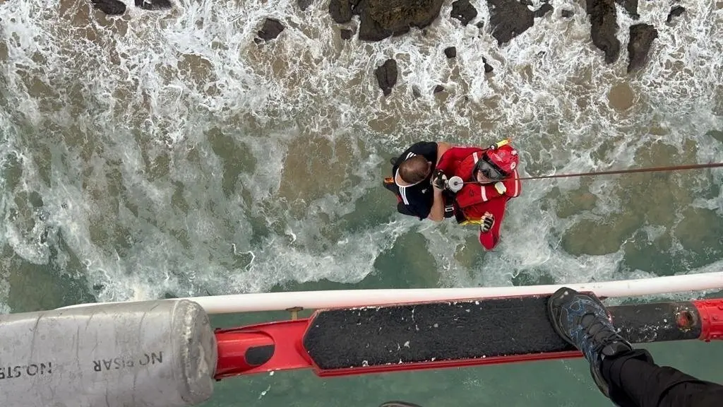 El helicóptero del Gobierno de Cantabria ha evacuado esta tarde a un vecino de Vizcaya, de 53 años, que se ha visto sorprendido por la marea y se ha quedado atrapado en una zona de rocas entre la playa de Trengandin (Noja) y la de Berria (Santoña).