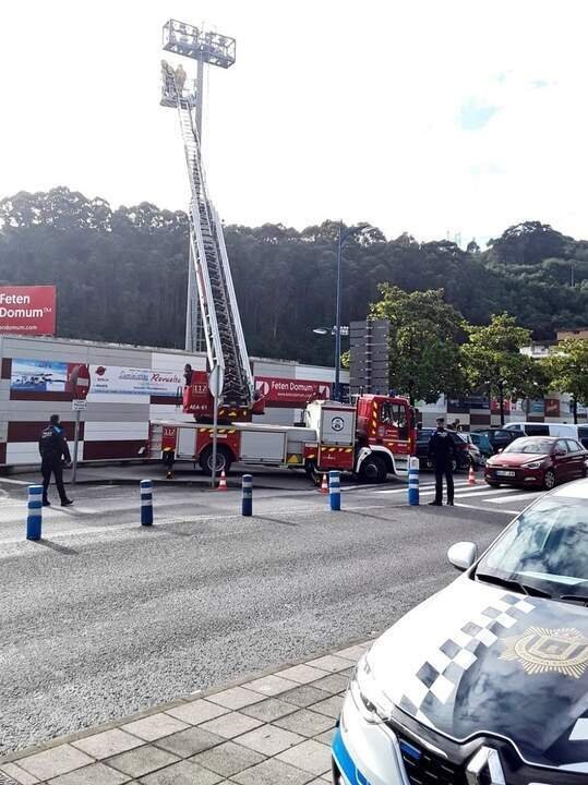 Retiran un nido de avispa asiática en una torre de iluminación del campo de fútbol de Laredo