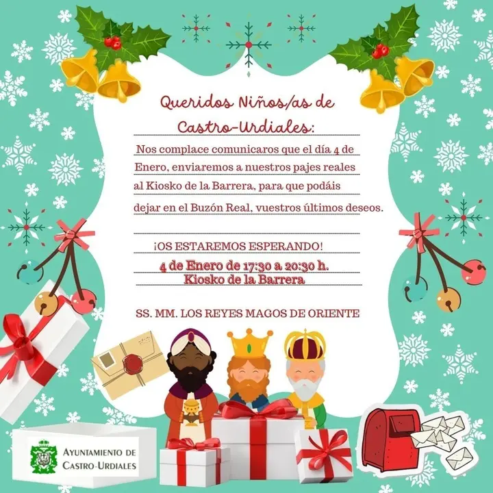 Además, el martes 4 de enero de 2022 los Pajes Reales estarán en el kiosco de la Barrera, de 17.30 a 20.30 horas, recogiendo las últimas cartas.