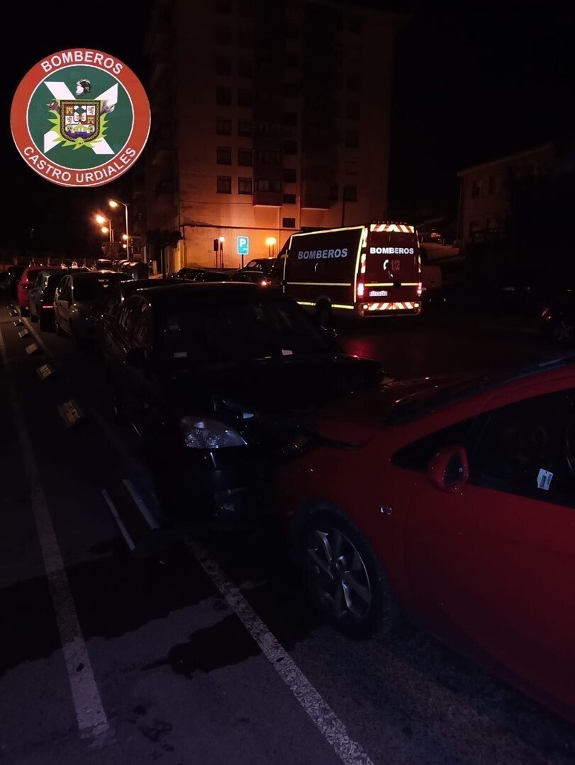 Un turismo ha golpeado esta madrugada a otros cinco coches que se encontraban estacionados en la calle Leonardo Rucabado de Castro Urdiales.