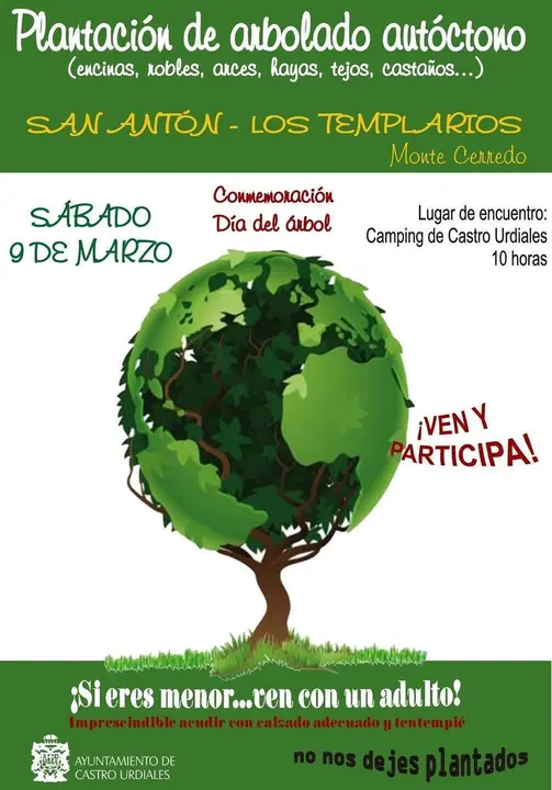 El Ayuntamiento de Castro Urdiales ha organizado para el próximo sábado, 9 de marzo, una plantación de arbolado autóctono en la parcela municipal de Los Templarios, en Cerredo. La salida se hará a las 10 horas desde el aparcamiento del camping de Castro.