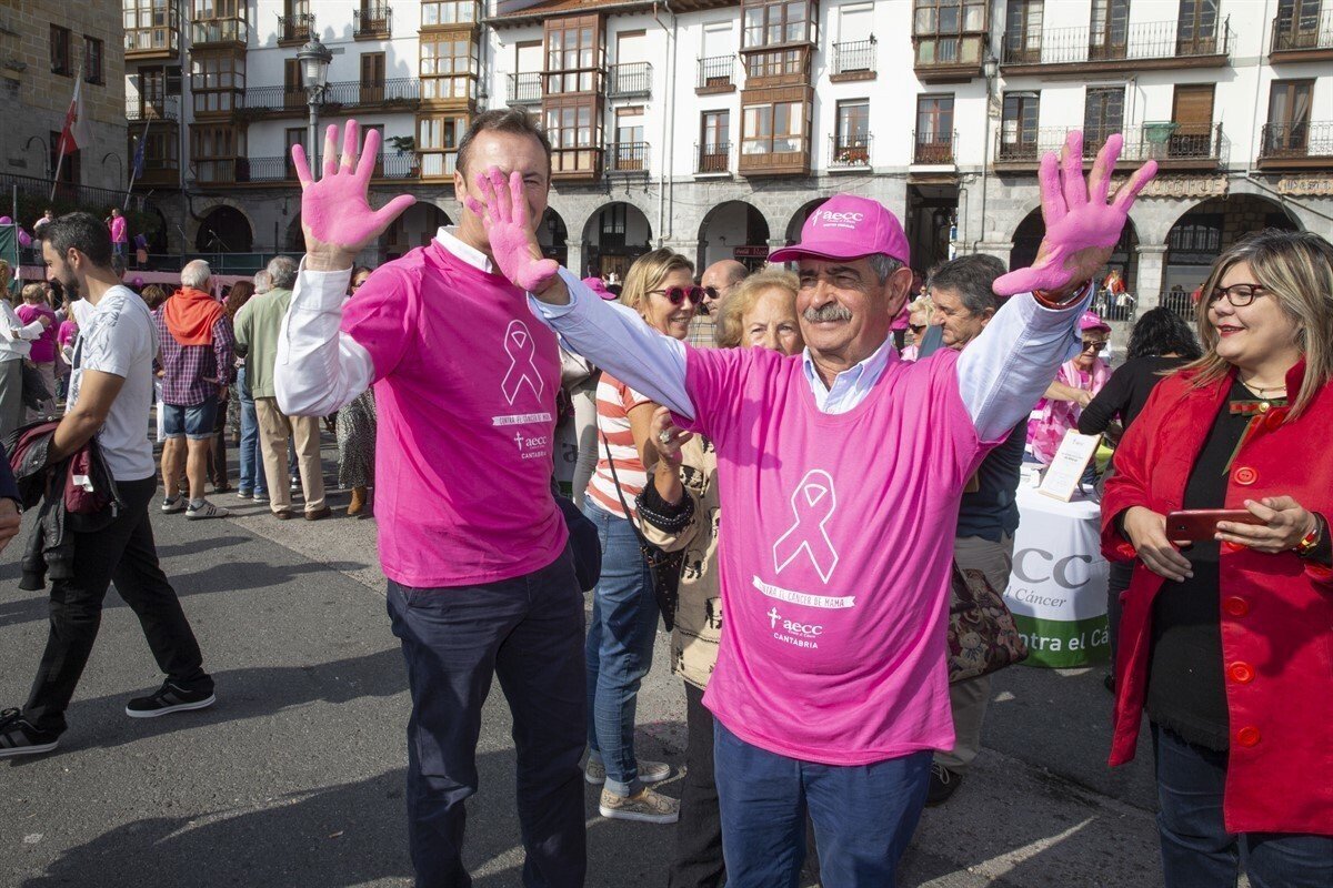 Centos de personas, entre ellas el presidente de Cantabria, Miguel Ángel Revilla, han participado este domingo en Castro Urdiales en el 'V Abrazo a la Bahía' que organiza la delegación local de la Asociación Española contra el Cáncer (AECC) en Castro Urdiales para visibilizar la lucha contra el cáncer de mama, concienciar a la población sobre los beneficios de una vida saludable y la necesidad de realizar una detección precoz de esta enfermedad.