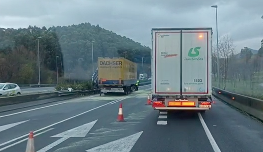 Cortados tres carriles de la A8 a su paso por Treto por accidente de camión