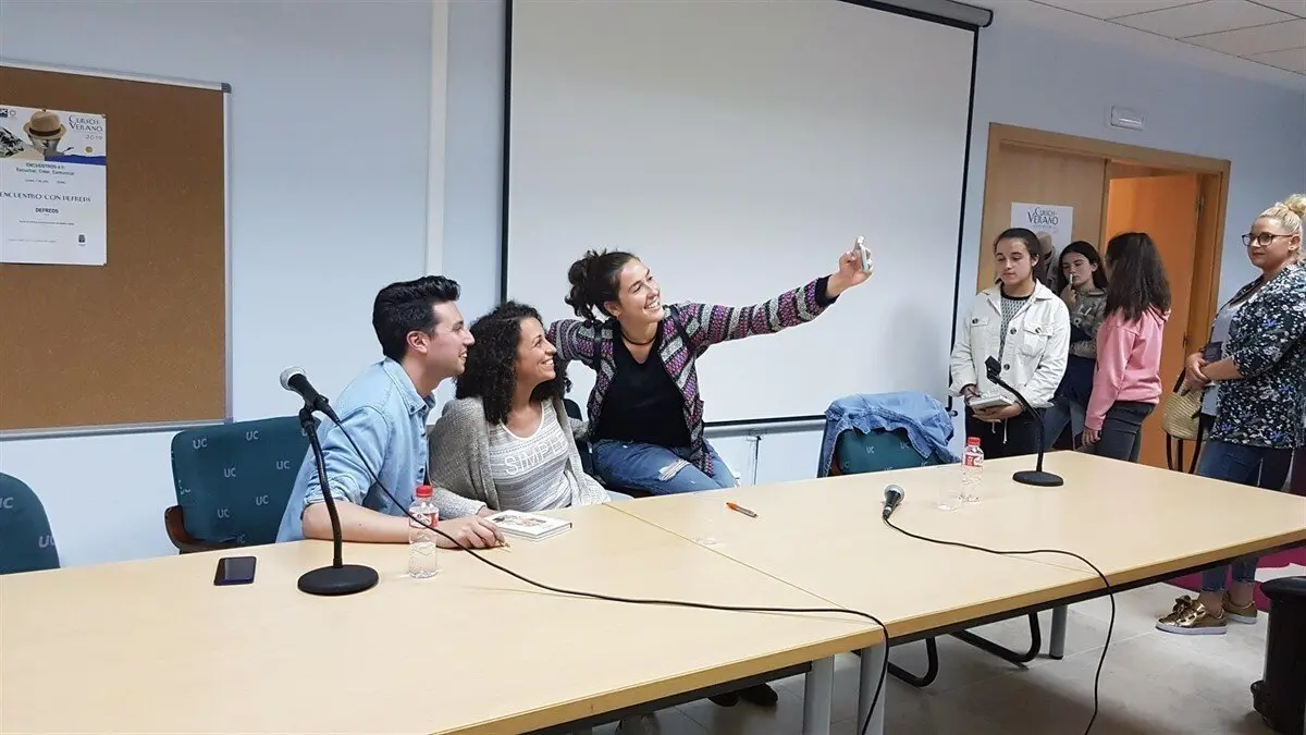 En Laredo, muchos de sus seguidores --su poesía atrapa a gente de todas las edades-- se acercaron a la Escuela de Idiomas para hacerse una foto con él y que les dedicara sus libros.