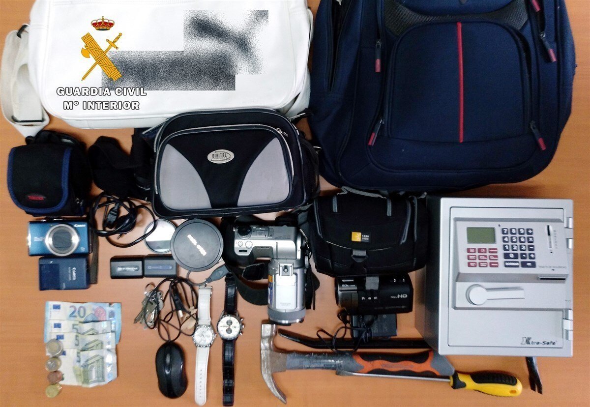 Los agentes interceptaron en la propia localidad el autobús que había salido con dirección a Bilbao. Entre los viajeros se encontraban dos varones que respondían a las características comunicadas, y portaban además sendas mochilas con una cámara de video, varias de fotografía y complementos de las mismas, dos relojes, una hucha-caja fuerte y una pequeña cantidad de dinero en metálico.