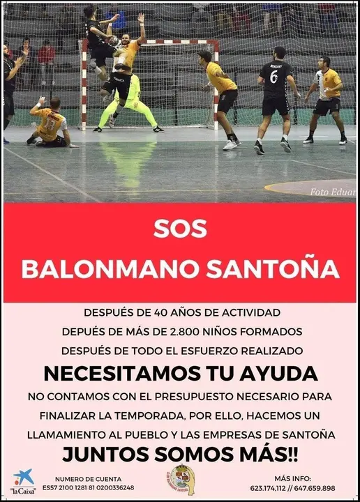 El club Balonmano Santoña ha solicitado de forma urgente apoyo económico a los ciudadanos para afrontar los "gastos mayores" derivados de su participación en la División de Honor Plata tras la "imposibilidad" de cerrar un acuerdo con un patrocinador que respalde el proyecto deportivo.