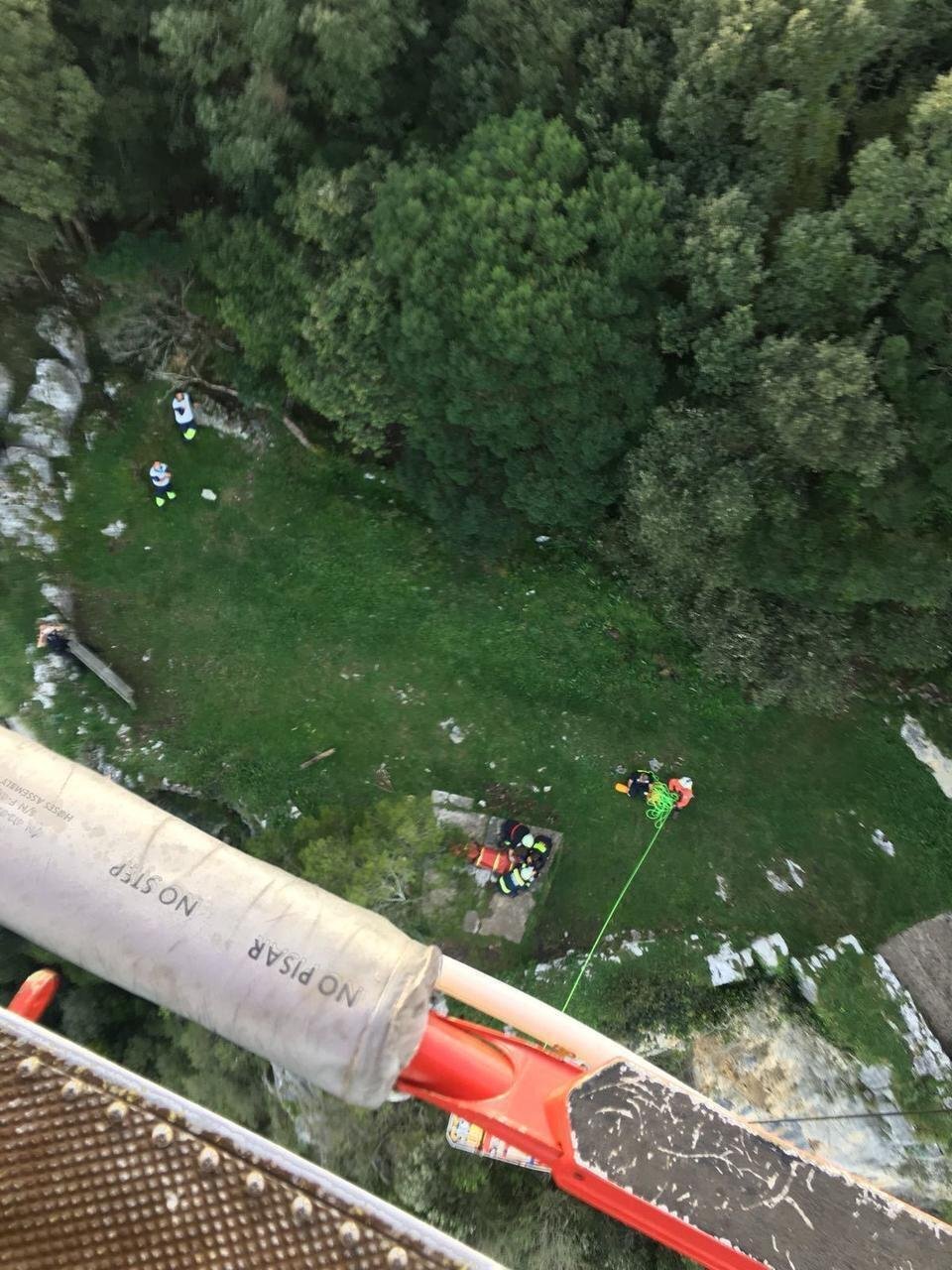 Hasta el lugar donde se encontraba el afectado llegaron bomberos del Gobierno de Cantabria junto a personal sanitario del 061 que tras un primer reconocimiento, inmovilizaron al senderista para ser transportado a un claro del monte Buciero donde fue izado al helicóptero medicalizado. La aeronave le trasladó hasta el aeropuerto Seve Ballesteros donde le esperaba una ambulancia que le llevó al Hospital Universitario Marqués de Valdecilla.