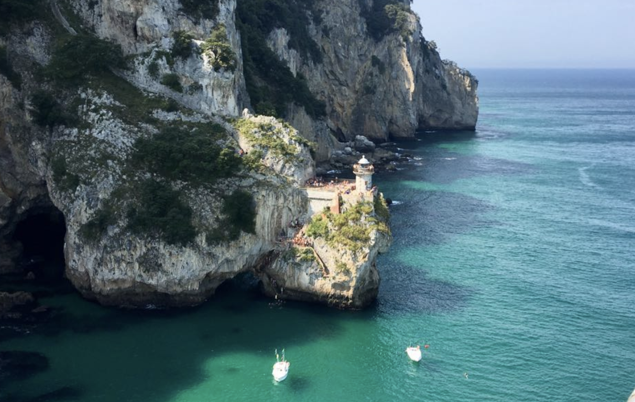 El helicóptero evacúa a un joven con traumatismo de espalda del faro del Caballo en Santoña