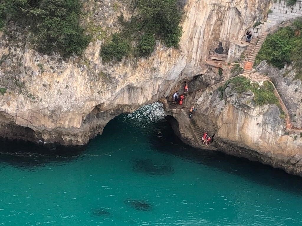 Una vez allí, el rescatador y la médico, que junto con el piloto, copilo y gruista forman parte del equipo, han descendido del helicóptero hasta el agua, para colocar el hombro del joven y ayudarle a llegar hasta la base del faro.