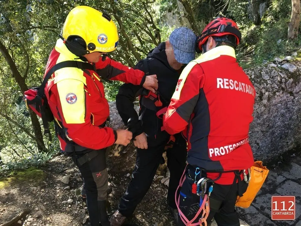 Ya con el afectado, el facultativo le ha valorado, y se ha decidido su evacuación por aire hasta Santander para su examen en el Hospital Universitario Marqués de Valdecilla. Para su izado al helicóptero se le ha trasladado a una repisa rocosa despejada, ubicada unos 15 metros por encima del lugar en el que se encontraba.