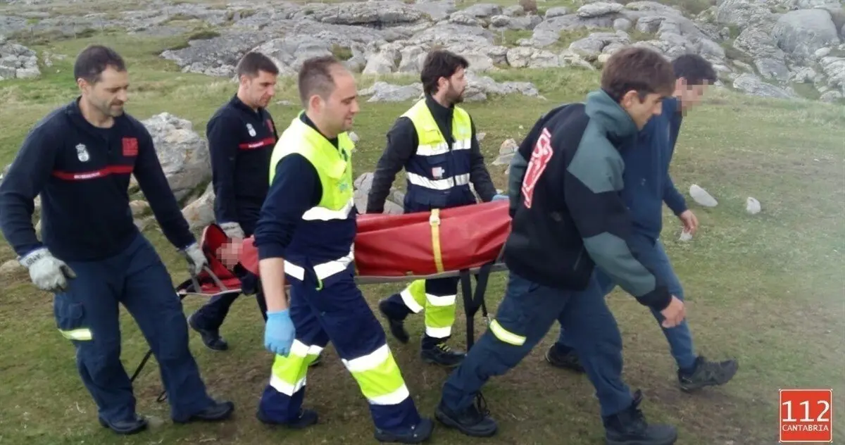 Bomberos del Servicio de Emergencias 112 del Gobierno de Cantabria y efectivos del 061 han evacuado esta tarde a un pescador de los acantilados de Ajo, en el municipio de Bareyo, con una posible fractura de pierna.