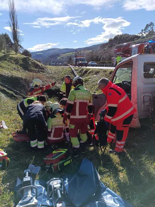 A la llegada de los efectivos los bomberos autonómicos han excarcelado al afectado que permanecía atrapado en el habitáculo, le han sacado del vehículo en un tablero espinal y le han estabilizado. Ya con el equipo sanitario de 061 en zona, le han realizado la atención de urgencia y le han trasladado consciente, y con pronóstico reservado, a la espera de pruebas diagnósticas, al hospital de Cruces.