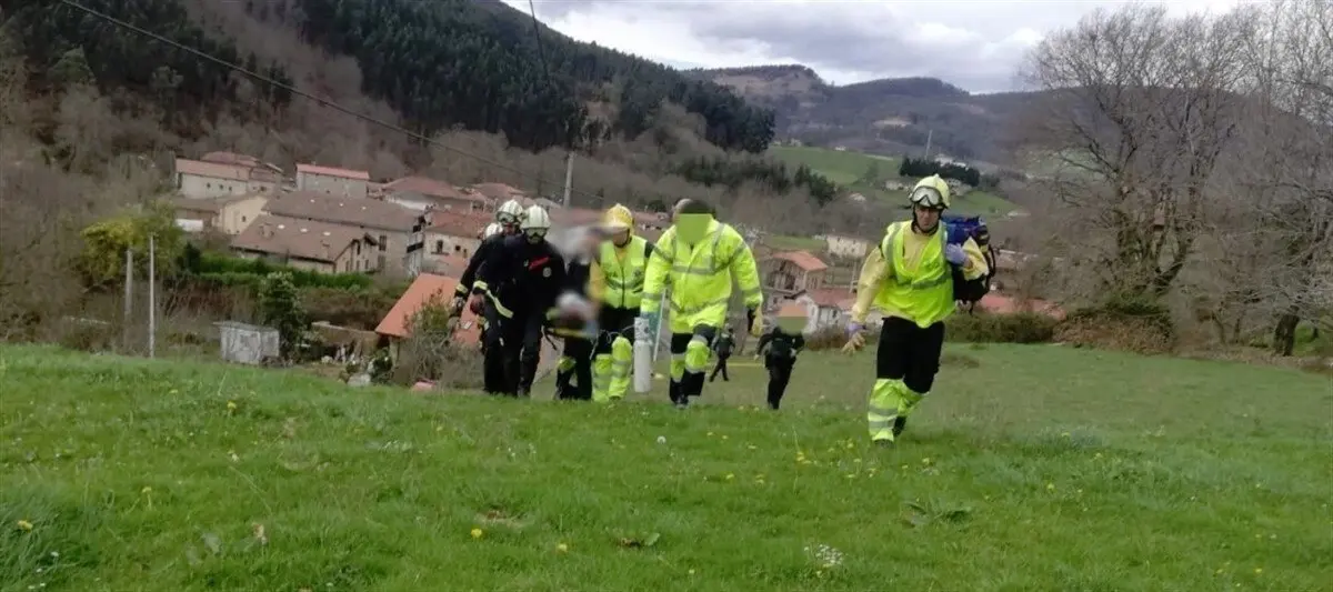 Junto a los bomberos y con el apoyo de la Guardia Civil y efectivos del 061, el trabajador herido fue trasladado hasta lugar accesible desde donde fue llevado en ambulancia al Hospital de Laredo.