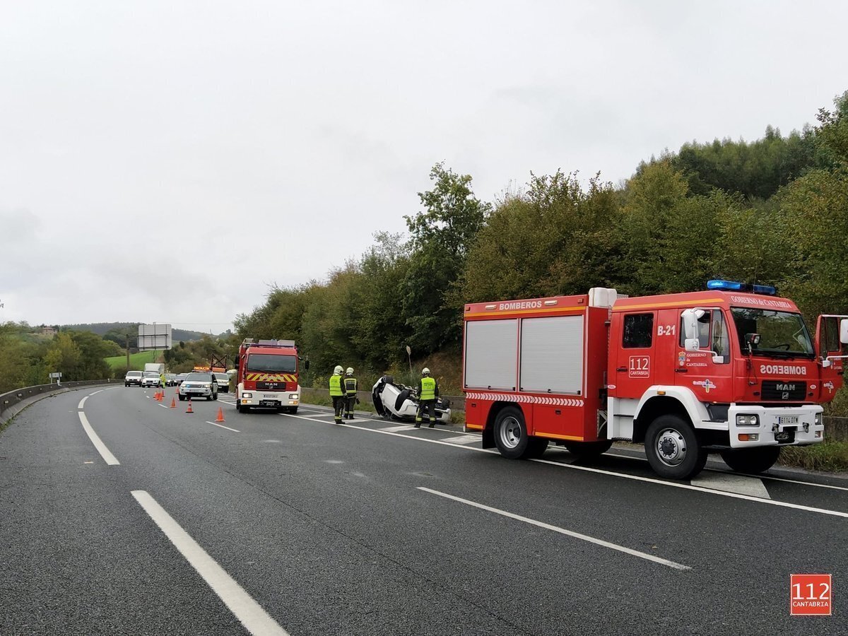 El Centro de Atención de Emergencias del 112 del Gobierno de Cantabria ha recibido el aviso minutos después de las 13:50 horas de un accidente de tráfico por una salida de vía con un vehículo volcado en la autovía A-8, en el punto kilométrico 184, dirección Santander, a 400 metros de la salida de Beranga.