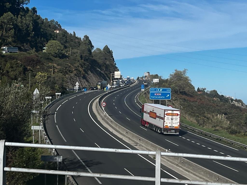 El tráfico está totalmente cortado sentido Bilbao y sentido Santander, está habilitado un carril.